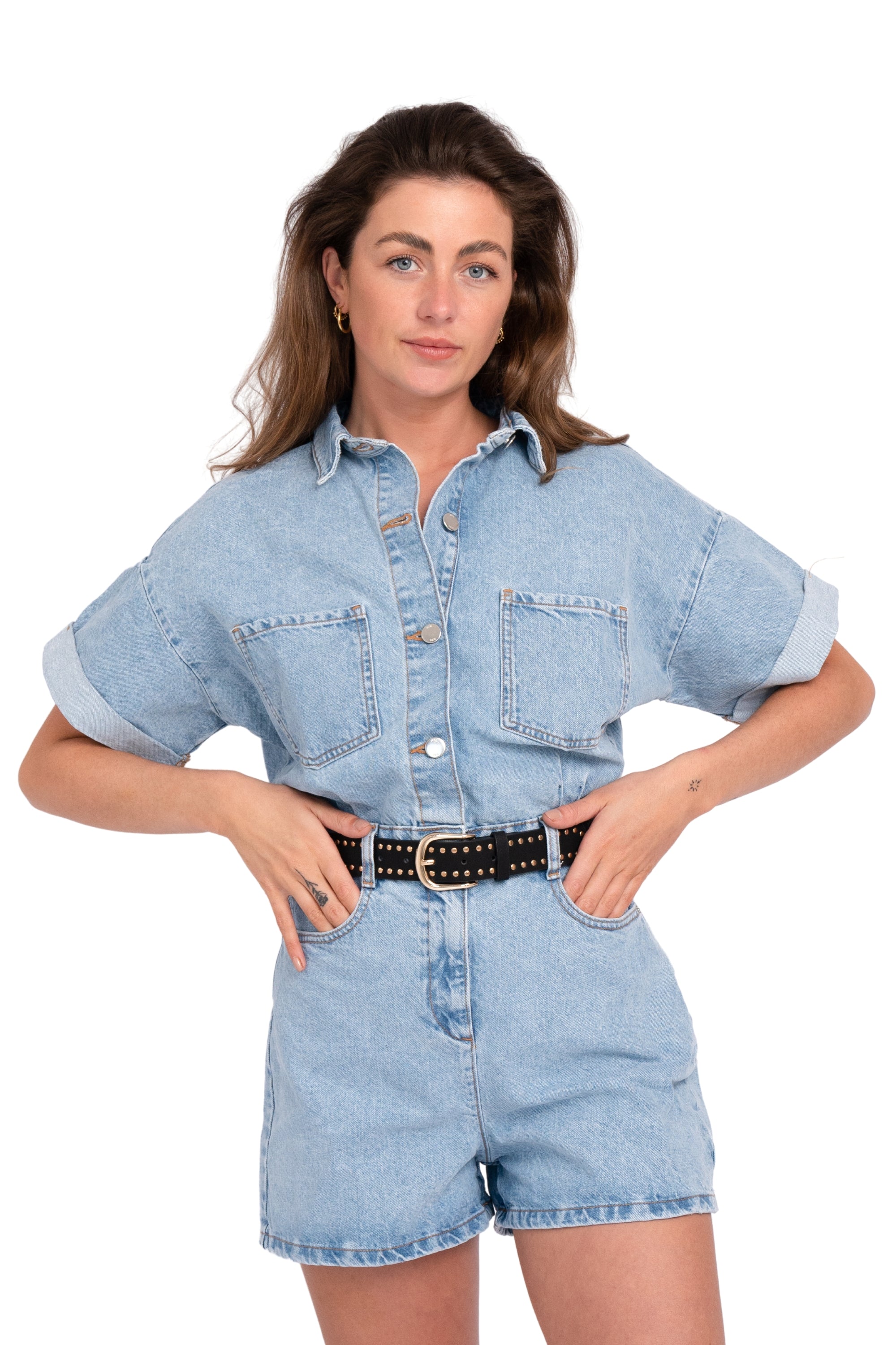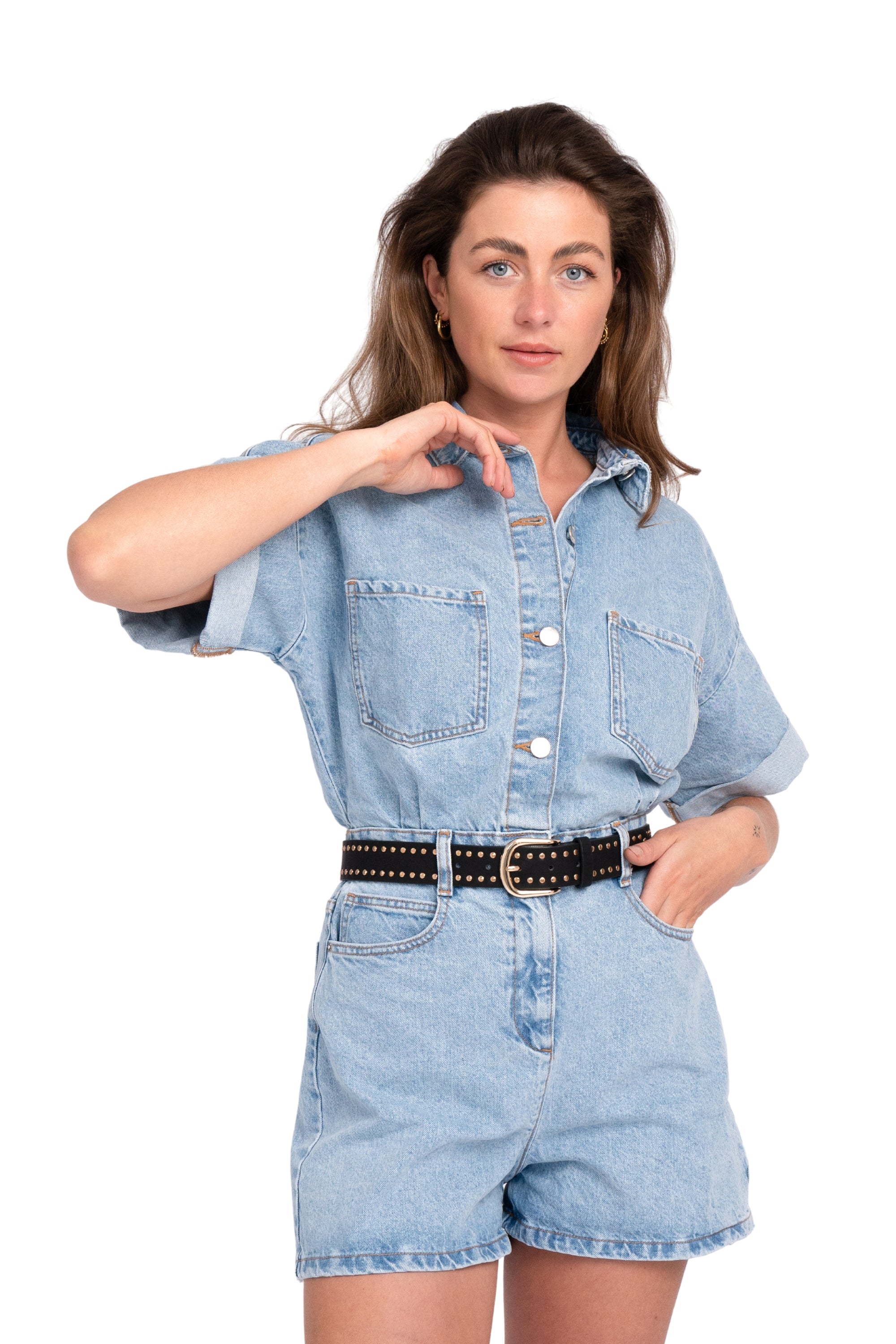 The belt from Rather Happy is well made, with high quality leather. It is also an attractive and unusual color, almost the same color as natural linen (which it is photographed on). It is well finished, with neat stitching, and the metal studs lie flat on the back. It is well put together. I am personally less happy with the buckle, which is chrome and hollow/ stamped buckle. I prefer solid metal, and would have been happier with a more natural color buckle. The belt itself is a very attractive color, and one which should go with most everything.I wear a size 10-12 and the M/L sits between my waist and hips. I am not sure if it will work for me with jeans because I do not wear high waisted jeans. I will try it tomorrow and update my review. When I ordered I thought I was ordering a size large and only saw the M/L when I visited to write this review.