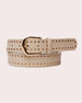 It's all about investing in the right accessories to complete your everyday look. Match the timeless Riley leather belt with your jeans or dress and watch your style level up. Made from real leather with a gold buckle and gold studded details, this sleek rock and roll belt is the perfect companion on the days you want to show off your wilder side.